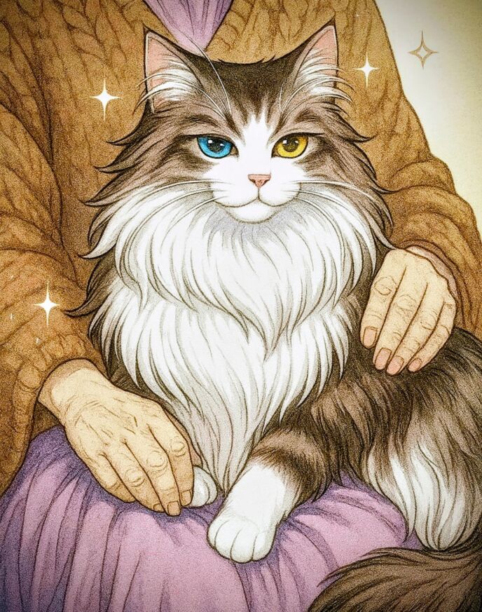 ニックは渡された写真を見て言った。しかし名前の通り堂々とした佇まいでマダムの膝の上におさまっている。可愛いというよりは格好いい猫だ。