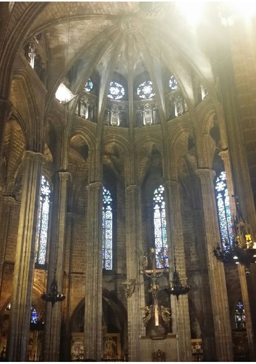 大きめの瓶を取り出して水を入れて、教会に入った。中はきれいに掃除がしてあって、正面には青いステンドグラスがはめ込まれた小さな窓がひとつ。祭壇は黒っぽい木材で出来ていて燭台が二つ置かれている。