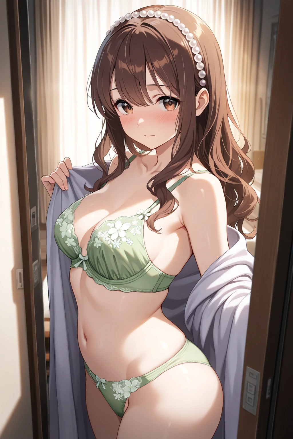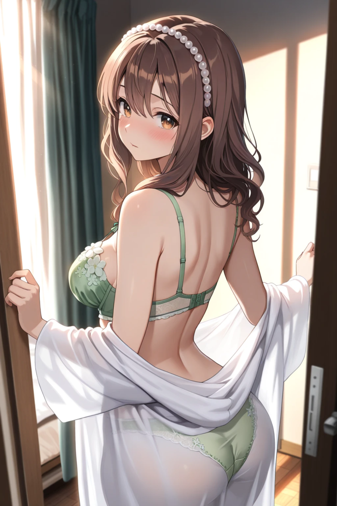 当日の朝、僕はクローゼットの前で、いつもよりずっと長く時間をかけた。まず、下着を選ぶ。引き出しの奥に隠した、僕だけの秘密のコレクション。その中から、小さなリボンがあしらわれた、ミントカラーの可憐なブラとショーツを手に取った。この清純な色合いの布地が、今日、彼の手によって露わになるかもしれない。その妄想だけで、僕の身体の奥が疼いた。