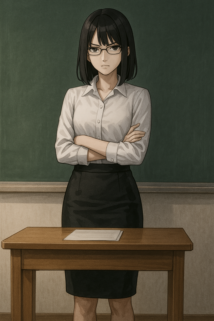 そのとき担任の山根ミクが教室に入ってきた。ミクはアラサーでいつも白のブラウスと黒のタイトスカートというコーデだった。肩まで伸びた黒髪と細い眉毛、白い肌に真っ赤の口紅の組み合わせで、一歩間違えれば女王様という出で立ちだった。