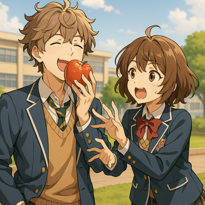 ナオはケントからリンゴを奪い取った。