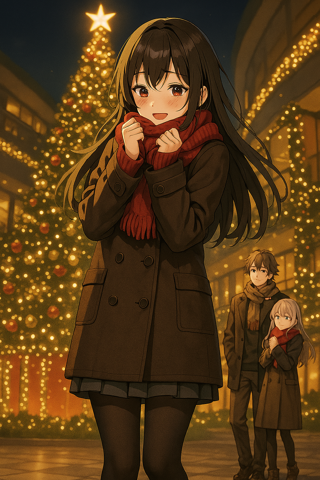 クリスマスツリーの前でナオが「写真撮ろう!」と言い出した。4人はコスモワールドを背にして写真を撮った。写真を撮った後、ナオは写真を見ながらリクとアリスに言った。