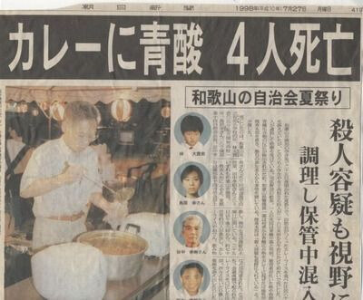 地区で行われた夏祭りにおいて提供されたカレーライスに毒物が混入され、カレーを食べた67人が急性ヒ素中毒になり、うち4人が死亡したのである。