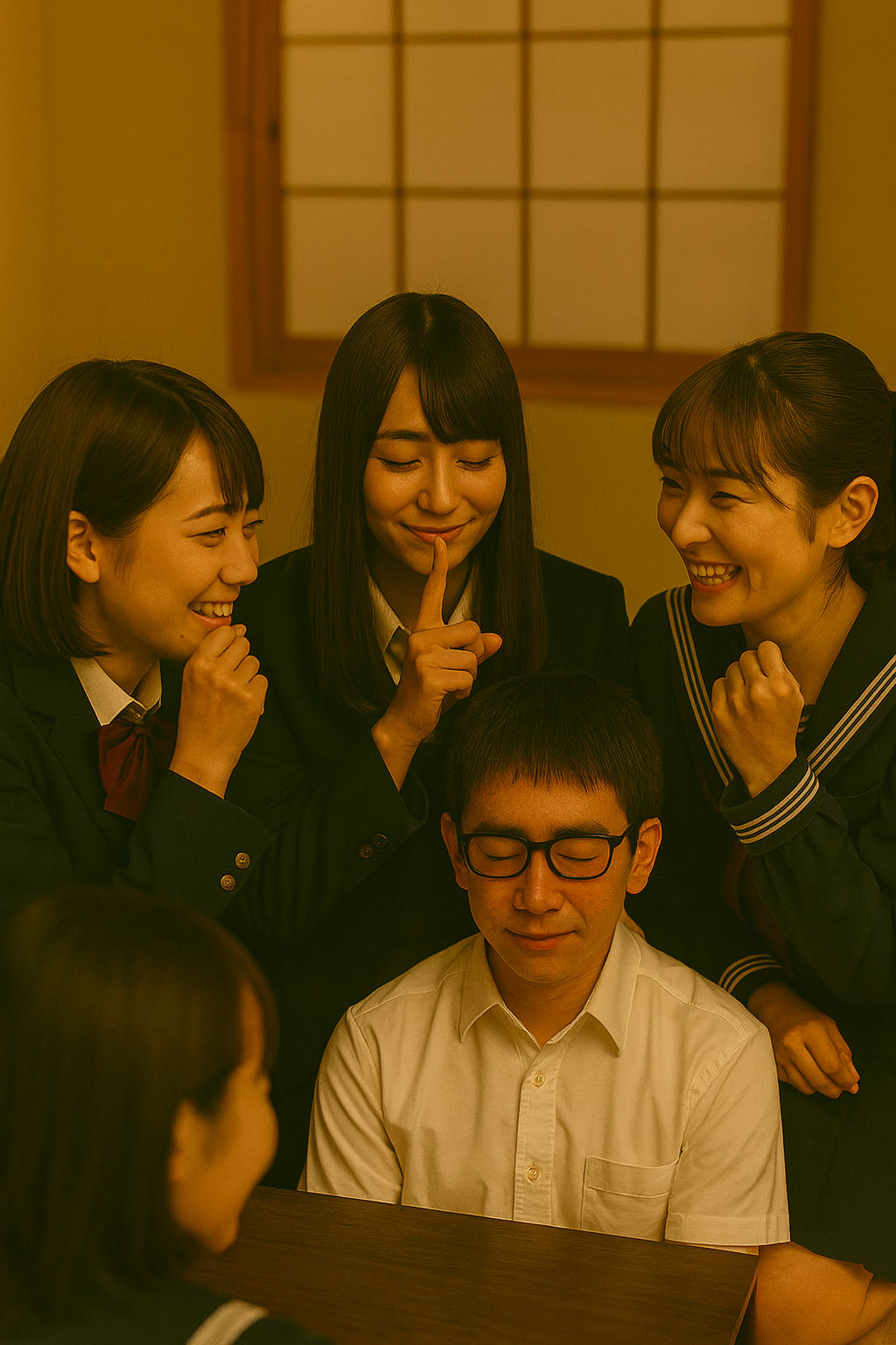 3人の小悪魔たちは、夜空の下、次のイタズラによって、ますます湊を恋の罠にはめ込むことを楽しみに、悪戯っぽく笑い合った。