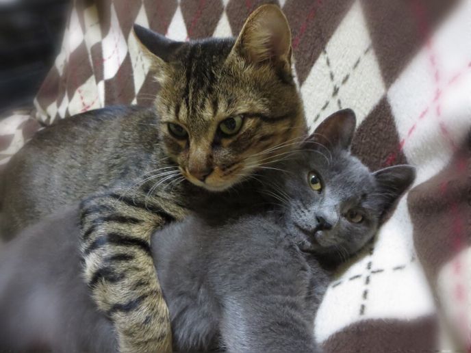 灰色もお迎えしたノラっこで、イクメンなしましまがしっかりトイレの躾けをしてくれました。
