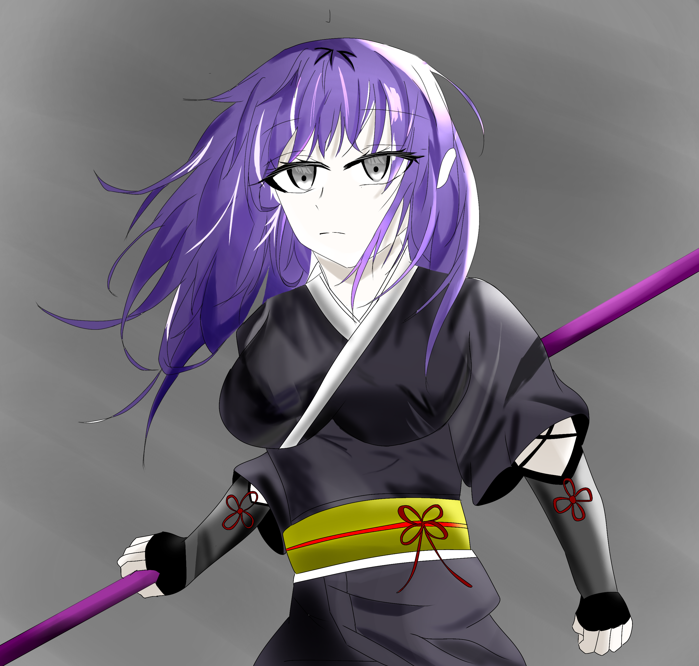 モルガンの体勢は変わることなく背中から銃口が出現した。下にいた閻魁はすぐさま反応し地面を蹴り上げた。レイは反動とともに飛び上がり真下のモルガンへと矛先を向け落下する。空中で銃弾を避けながら間隙を縫うようにモルガンへ向かい肩に矛先が突き刺さった。