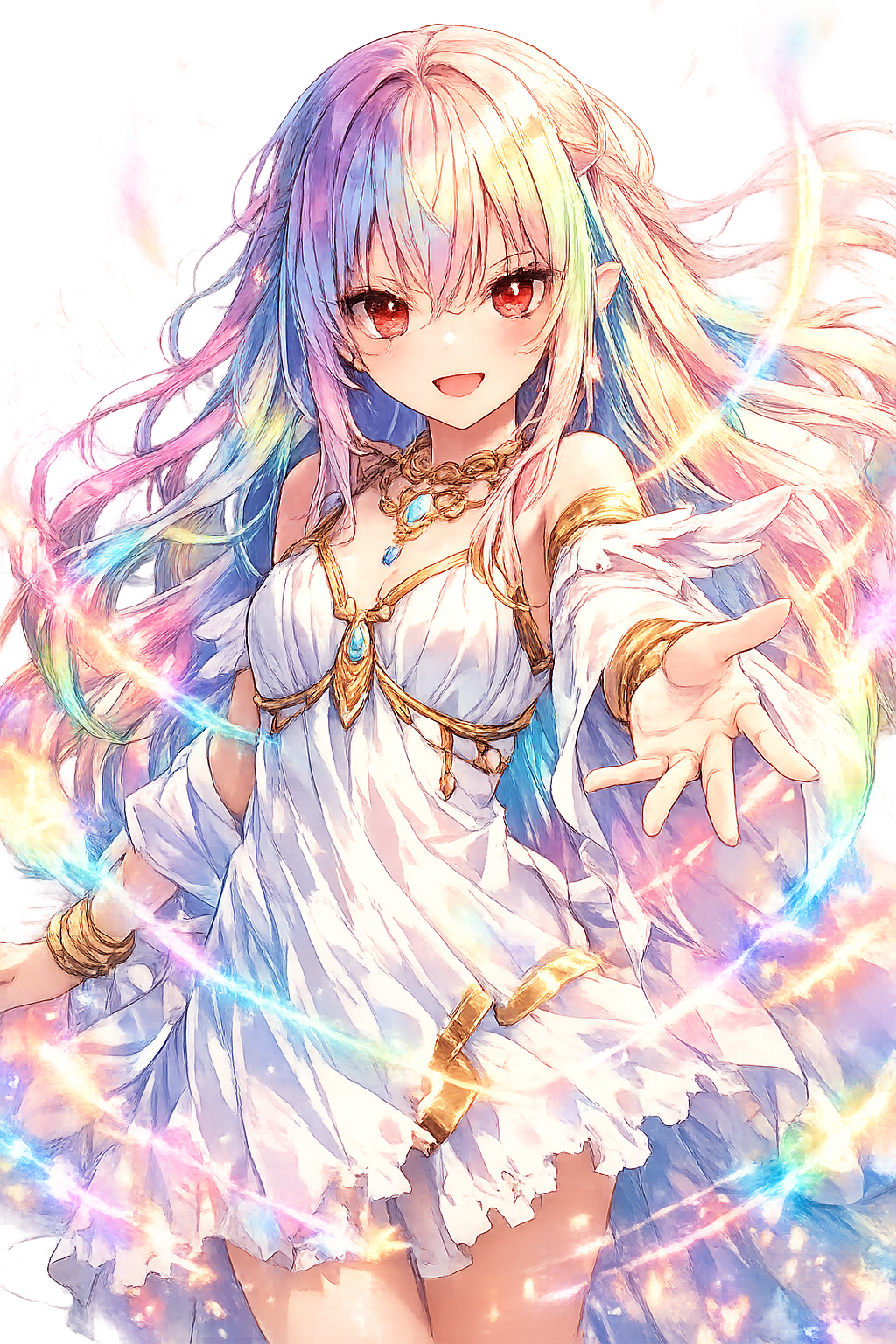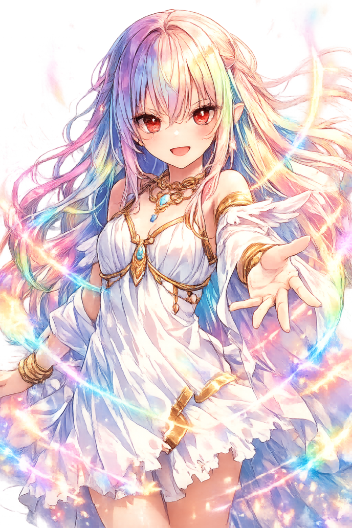 今の僕と同じく髪の色は多色で瞳も赤かった。それでいて、彼女の周りには神々しい多元色のオーラが纏わり付いている。