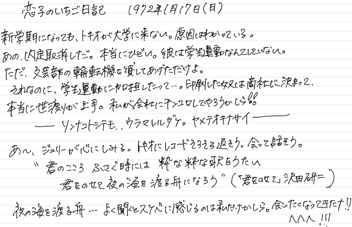 恋子のボーイフレンドのトキオが学生運動の学生たちに輪転機つまり印刷機を貸した行為がなぜか企業側に明るみになってしまった。