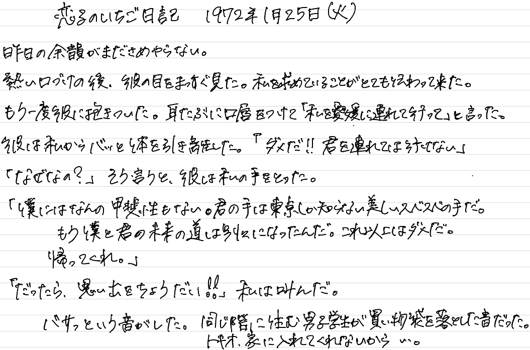 「僕にはなんの甲斐性もない。君の手は東京しかしらない美しいスベスベの手だ。