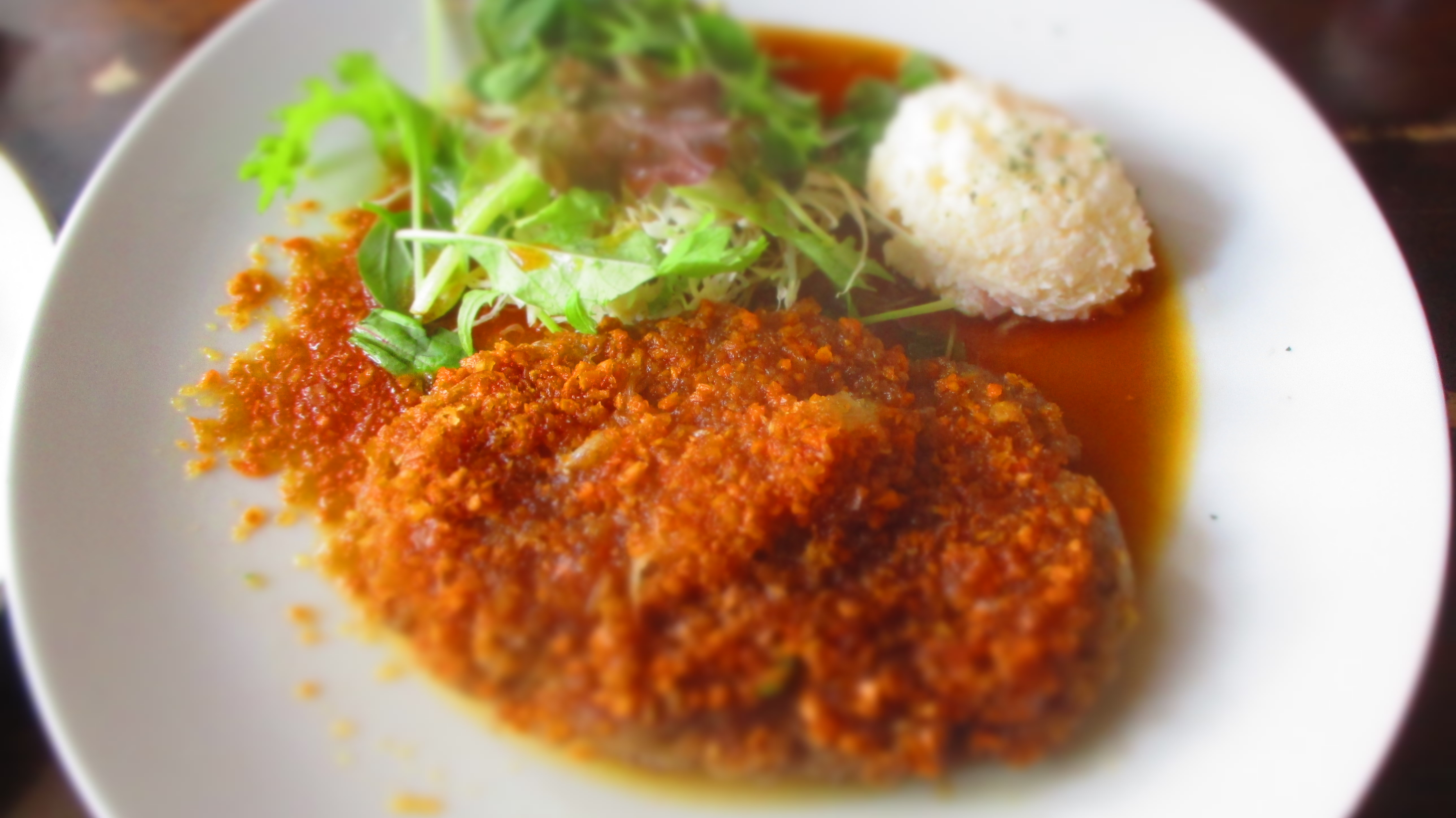 GKDGは、そこで、ハンバーグを食べ、オレンジのショートケーキを食べ、