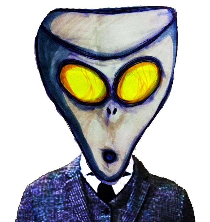 この土地には、何故かブリテン島のカントリーサイドを流れているような川が幾つかある。少女は、そんな川のひとつで、何かをウォッシュしている。歳の頃は、我々の子供ぐらいの年齢だろうか・・・。少女はちらと、こちらを向いた。十歳位の子供の顔だ。そう思った。だが其の瞬間、ザザッと彼女の顔にブロックノイズのようなものが見えた。そして次の一瞬、一秒程だろうか、彼女の顔が人間のそれとは違う何かに見えたのだ。その顔は宇宙人特集テレビ番組に出て来るような、そう、『リトルグレイ』{英語では、グレイ・エーリアン}と呼ばれるアレ、つまり私には地球外からのエイリアンにしか見えなかったのだ。なのに私は驚愕という程に驚いたわけではない。この町、Gタウンに何らかのエイリアンが暮らして居るって事は、エレメンタリースクール時代から感じていた。当時のスチューデントらの噂話では、学校のそばの中華拉麺店の店主は国際俳優Tに似ていたけれども、ほんとうは宇宙人{SPACE-MAN}だと云われていた。そんなある日「これが店主の正体だ」と、ひとりの友人が私にイラストを描いてくれた。