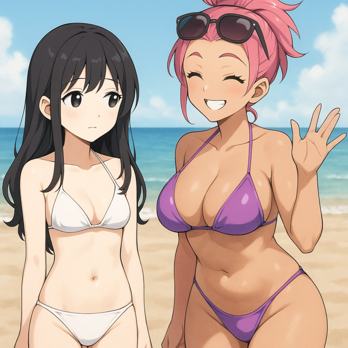 ハルカだった。夏の太陽のような笑顔に、胡散臭い色付きデカ眼鏡。ブリーチしたアップバングの髪は、アニメキャラみたいなピンク。日焼けしたグラマラスボディに、紫色のテカテカマイクロビキニ。上も下もすでにいろいろはみ出ている。