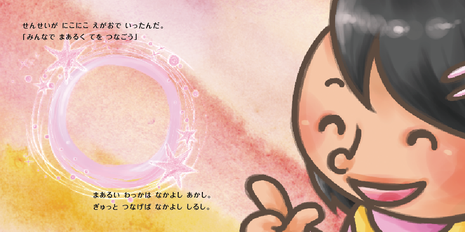 「みんなで まあるく てを つなごう」