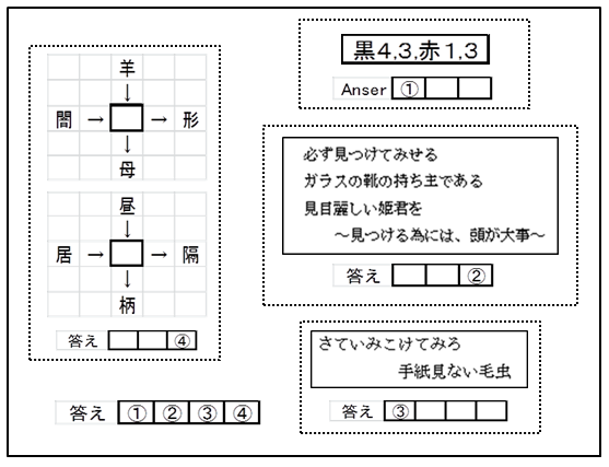 「あ、分かった! 答えは【 】で、④の文字は【 】でしょ!」