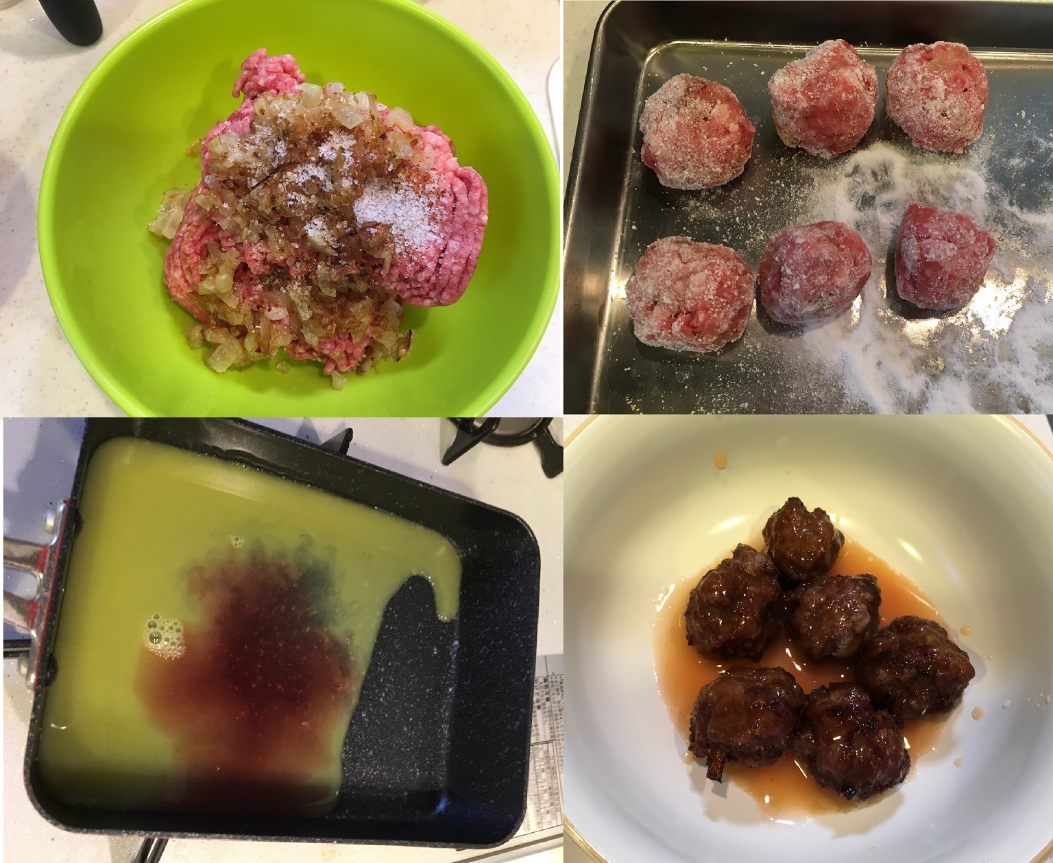 ソースに粘りが出てきたら、肉団子に絡めます。