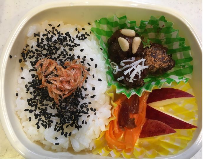 おにぎり、オムライス、そして肉汁溢れるハンバーグ。