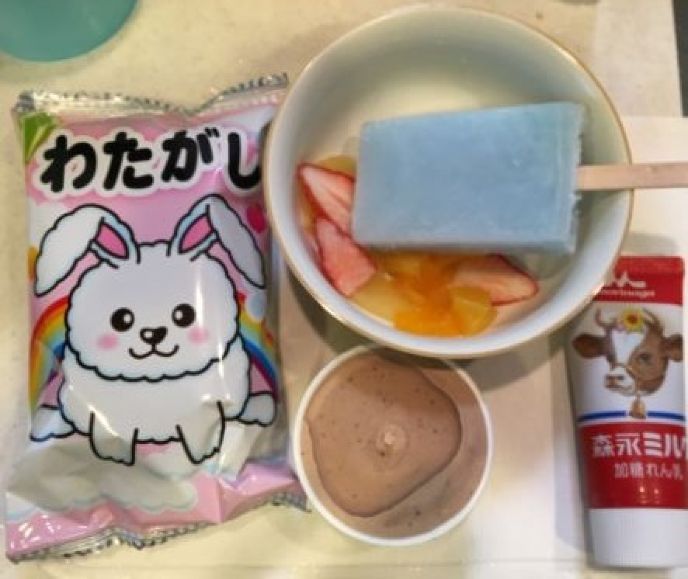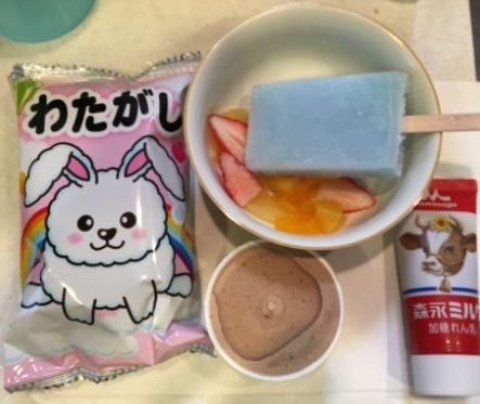 練乳とソーダ味アイスかき氷は意外に合います。綿あめに練乳も合います。