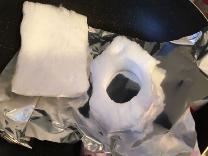1.クッキー型を使って、わたがしの中心に穴を空けておきます。