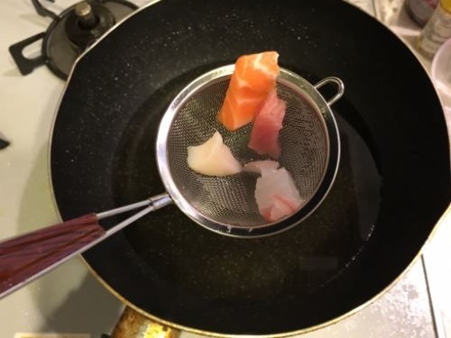 3.刺身も同様に油をかけて表面に火を通しておきます。