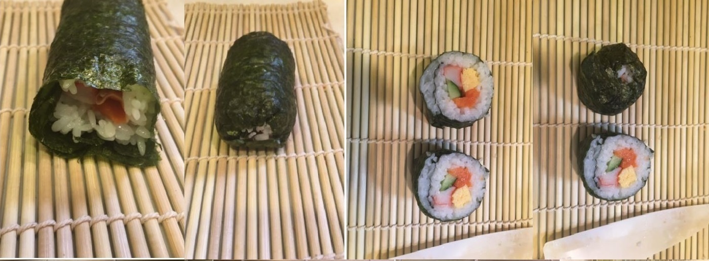 作中での説明の通り、具が突き抜けて落ちる事がありません。受験生向けの落ちない太巻きです。