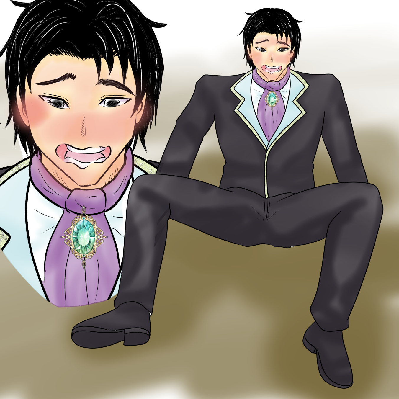 驚いて振り向くと、倒れた机の横で、公爵様がどう見ても尻もちを
