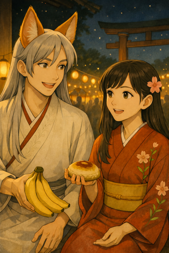 「そうだね。食べ物も含めて、祭りって大好きなんだ。もちろん、俺みたいなあやかしには、祭りの灯火、賑わいなんかは眩しすぎて――遠くから眺めてるくらいがちょうどいいんだけど」