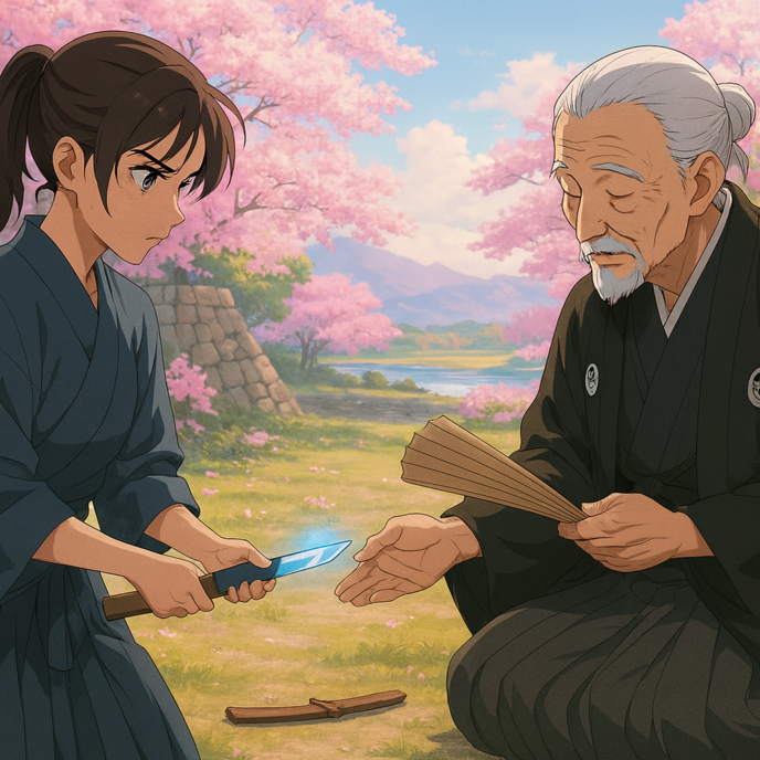 私は迫り来る扇子の線から半歩だけ身をずらし、自分の竹刀を滑らせるように老人の一撃に添わせた。打ち下ろされる力を横へと流し、その反動を利用して、踏み込む。老人の腕がまだ戻り切っていない、その瞬間――私は全身の力を込めて、渾身の一撃を打ち込んだ。