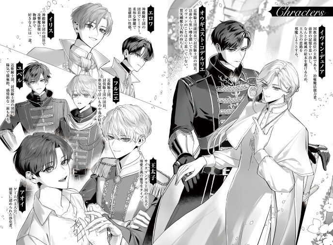 王太子の命を受けて一礼した男は、オウギュスト・コデルリエ。国内随一の剣の技量を誇る近衛騎士団副団長であり、若くして次期団長と目される人物だ。たったいま、特別に組織される討伐騎士団の団長に任命されたようだ。特徴は黒髪とオリーブ色の瞳。質実剛健な人柄と評され、ただいるだけで周囲を威圧する雰囲気を持つ、俺とおない年の三十歳。