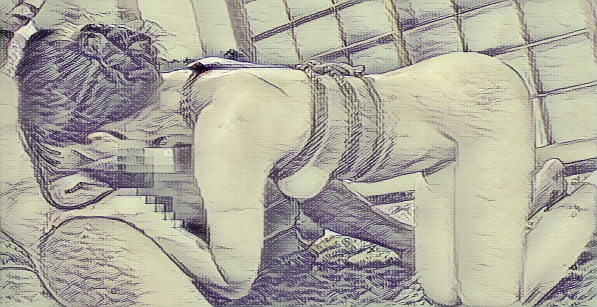 一糸纏わぬその白い身体には麻縄がかけられ、打たれた尻を赤く染めながら男の股間で頭を振る母。