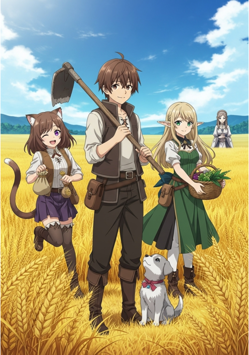 過労の果てに命を落とした青年が転生したのは、痩せた土地が広がる辺境の村。彼に与えられたのは『万能農具』という一見地味なチート能力だった。しかしその力は寂れた村を豊かな楽園へと変え、心優しきエルフや商才に長けた獣人、そして国の未来を憂う王女といった、かけがえのない仲間たちとの絆を育んでいく。