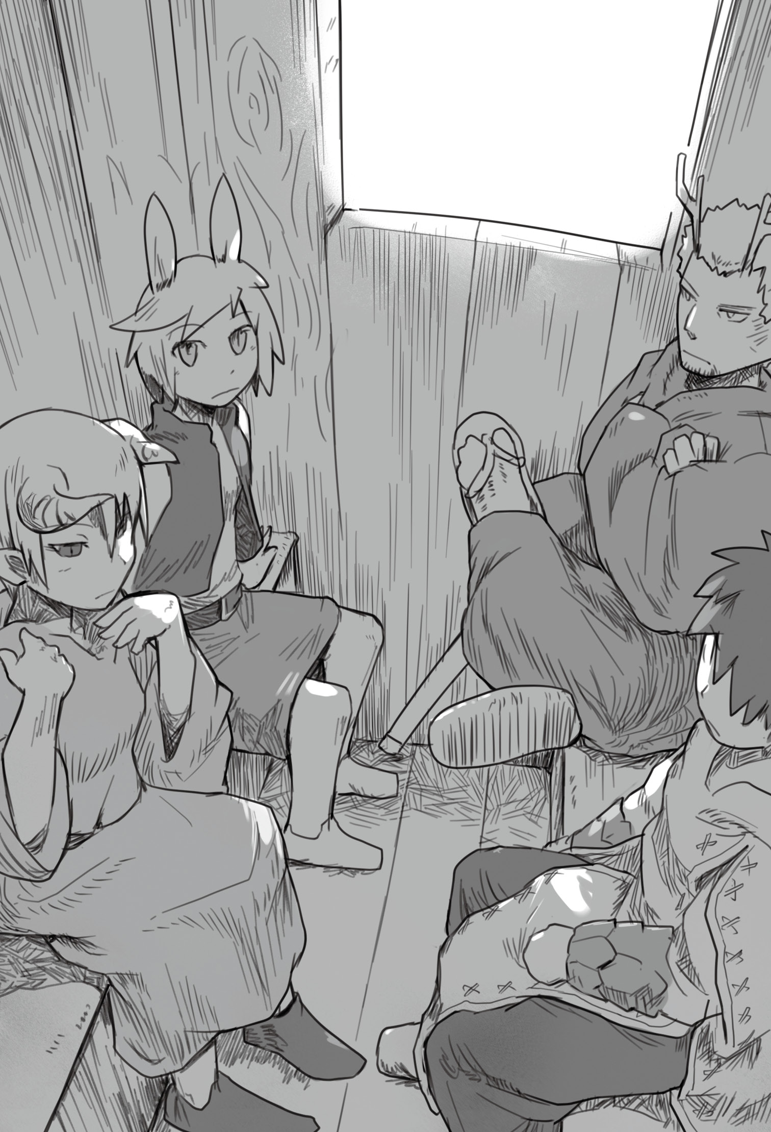 この自分の意見に、龍人は「よかろう」、獣人は「まあ、退屈しのぎにはなるかしら」と同意した。そして、外套を纏っていた人は外套から青白い腕を出し、自分と同じようにフードを脱いだ。その頭にはなんと、ヤギのような角がある。それから顔も晒したその女性は「いいわ、おしゃべりに付き合いましょう」と頷いた。
