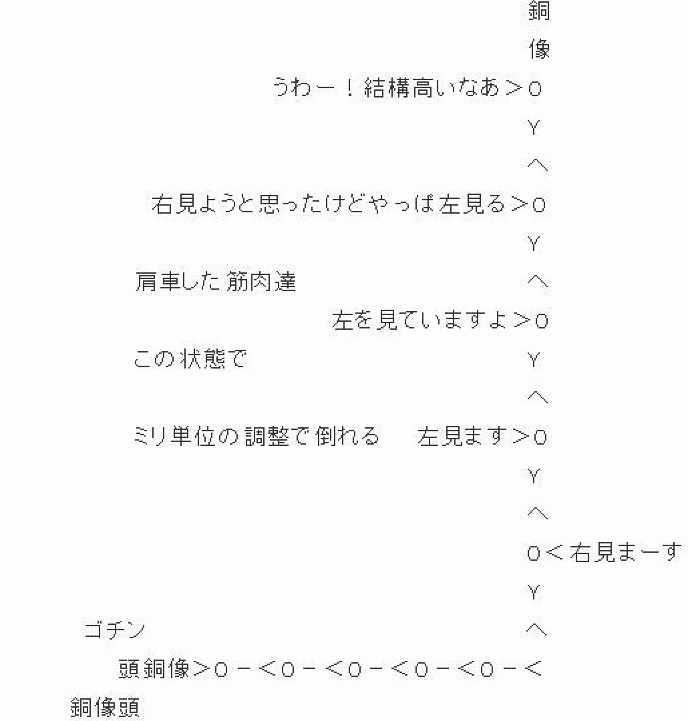 叩き付けた側の上の銅像の首が、ぶつかった衝撃で