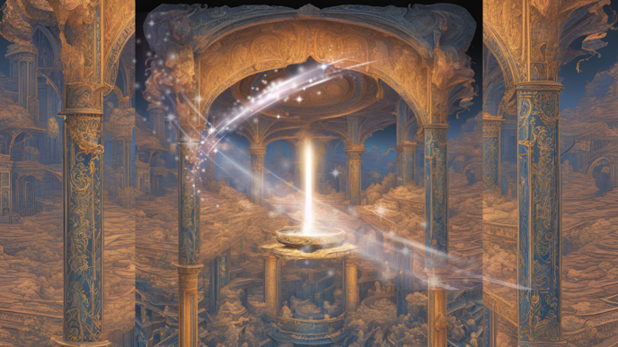 後方で大きな破壊音が鳴り響く。同時に無数の閃光が天井に広がり、扉の前の二人を照らす。その閃光が次の瞬間、弧を描いてシンとジェドの方へ降り注ぐ!!