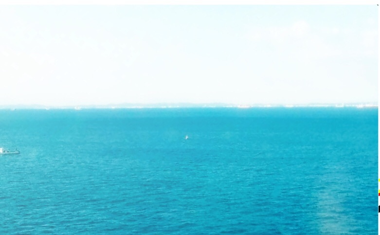 その丸山と原口は、船の最上階、パノラマデッキで小休憩。