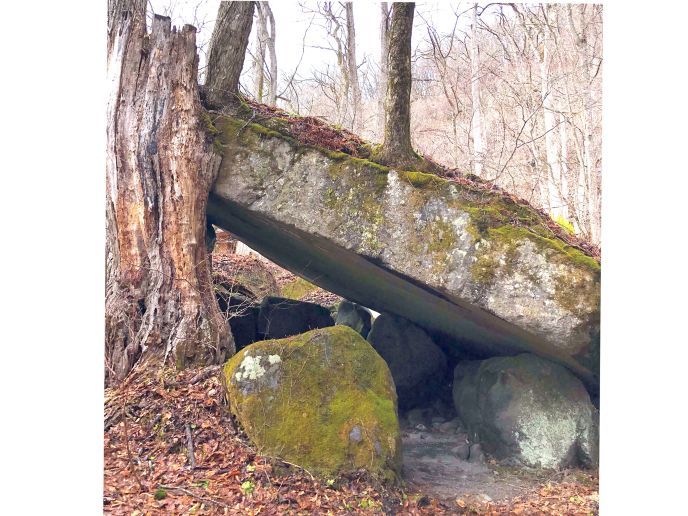ここの岩屋というのは、ゴロゴロとした岩が沢山あって、その中の大きな岩の上に一枚岩がドンと乗っかっていて、まるで屋根の様だから、そう呼んでいるのだ。