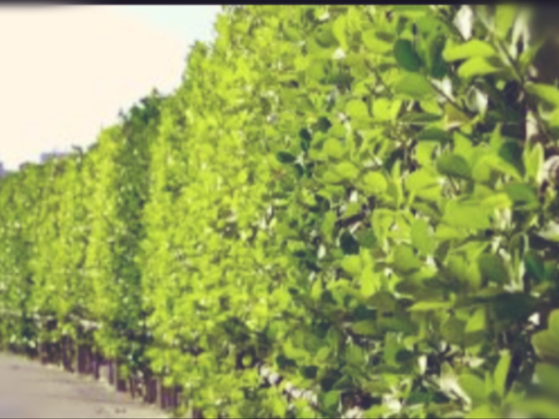 低めに剪定された垣根が美しく、奥にはお寺の様な建物があった。