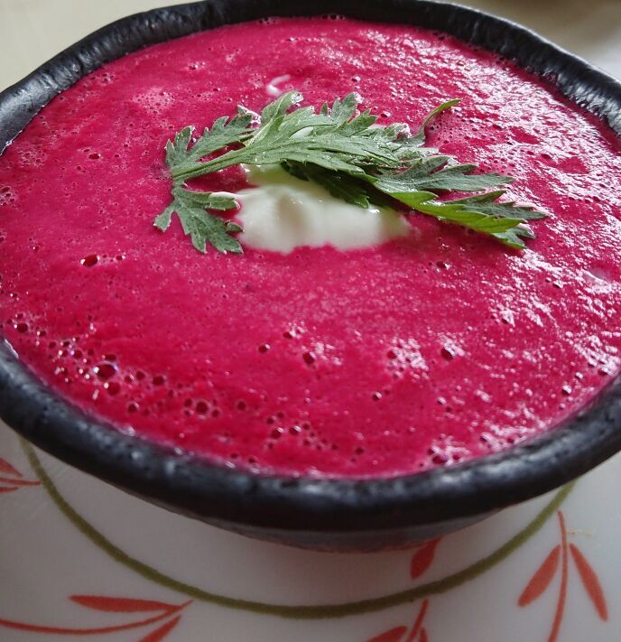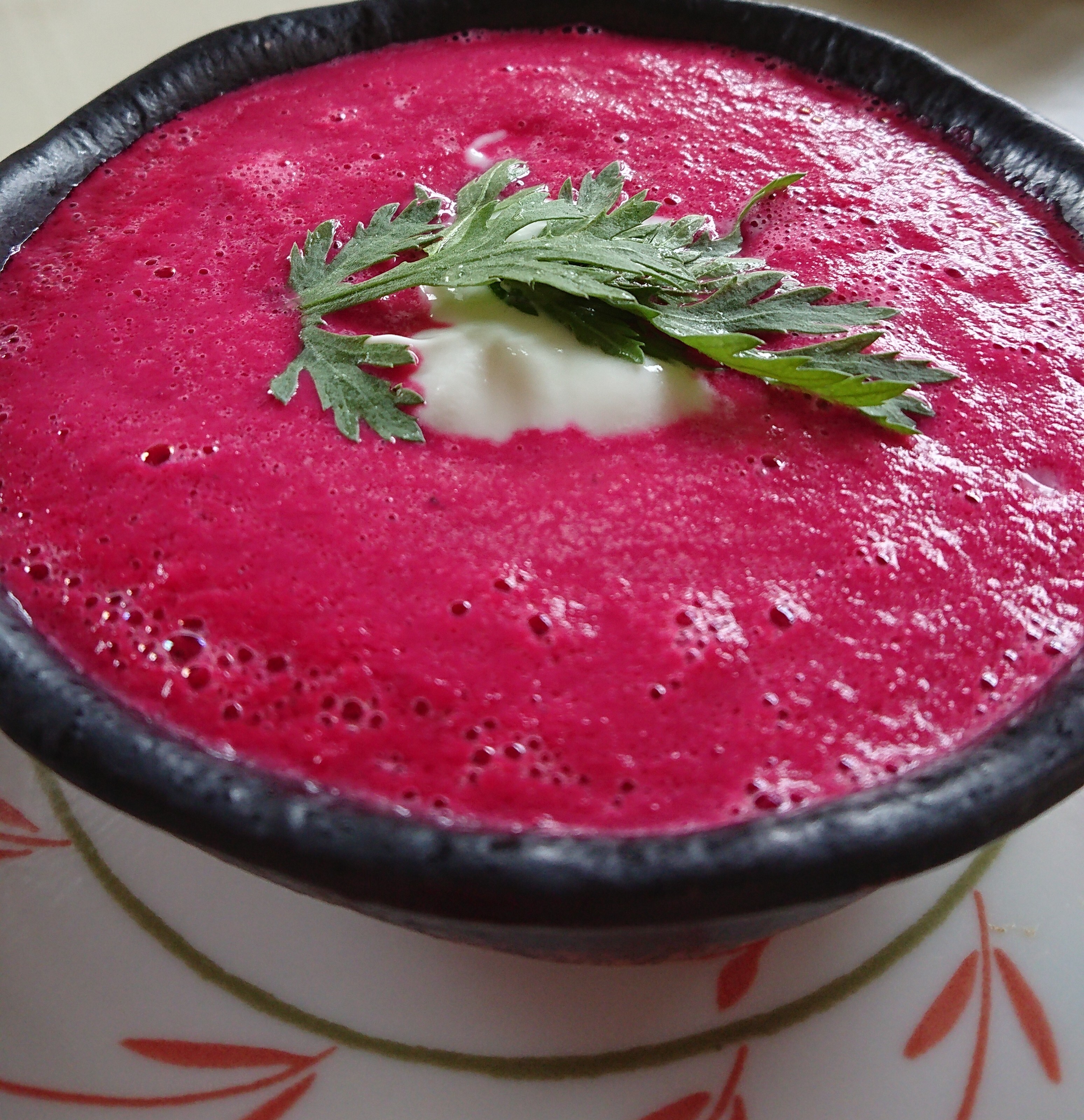 ①下茹でしたビーツ、ウィンナーソーセージ、ニンニクを適当に切り、バターで炒める。