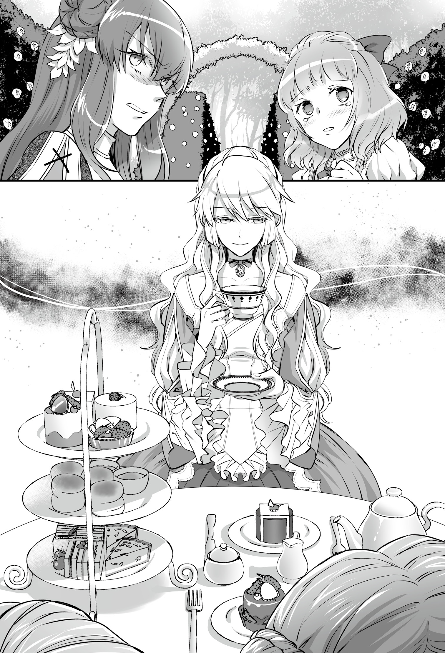 色とりどりの花が咲く庭園には丸テーブルが置かれ、お茶の用意が整っていた。テーブルを囲うように数人の妃が座っている。その中で、ひときわ派手な妃がこちらを見て言った。