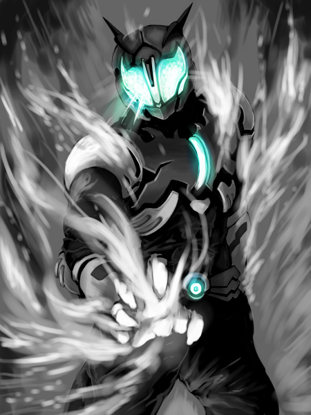 そして、その顔を覆う薄灰色の仮面の中心には一つの赤い光眼。