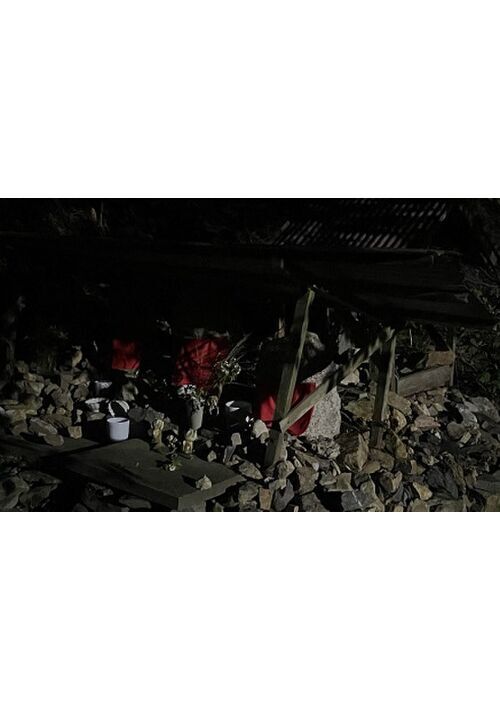 このお話は私の考えたものですが、これは本当にある場所で、このお地蔵さまは実在します。写真はそのお地蔵さまです。あまりアップで見ない方がいいかもしれません。