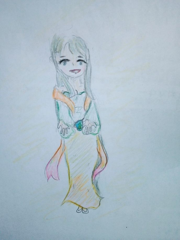 下手くそですが、ラフェリアンの魂を見つけた女神アイリスの絵、公開します。