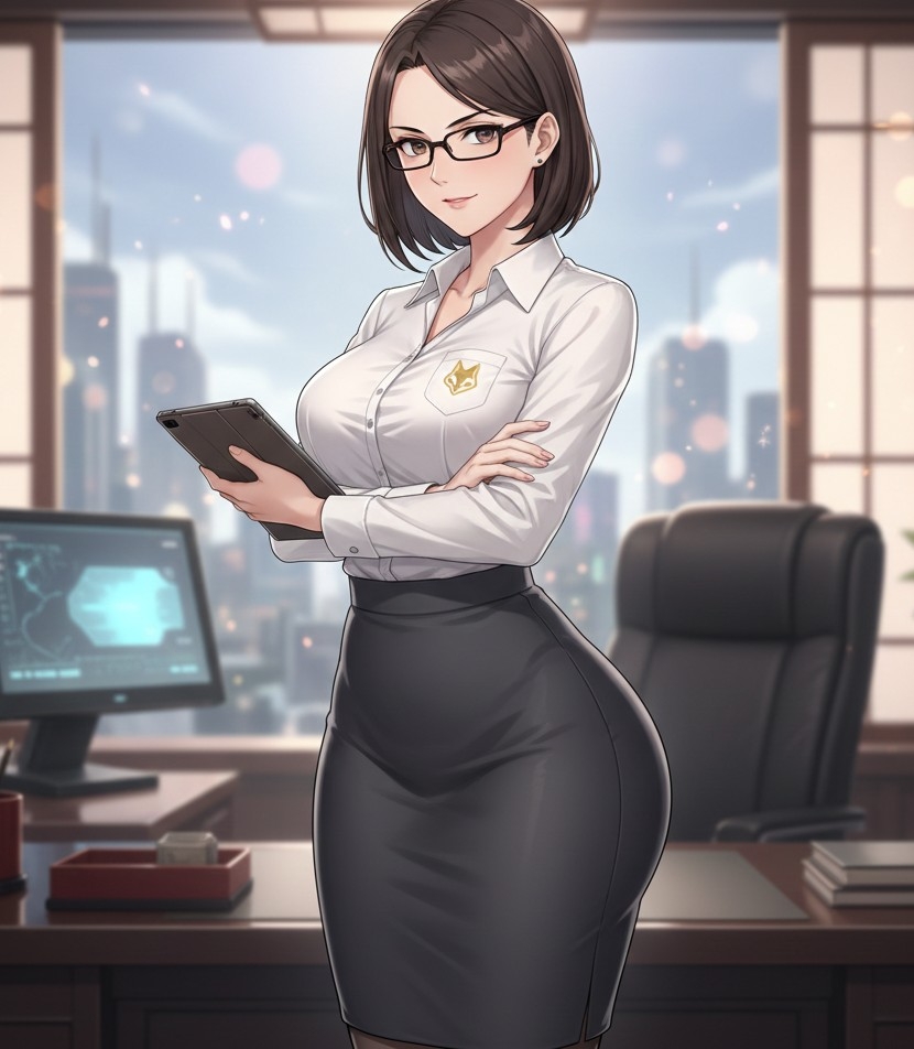 ピシッとした白いブラウスは、その豊かな胸の弾力に耐えかねてボタンが今にも弾け飛びそうで、タイトスカートは、彼女が動くたびに肉感的なヒップのラインを露骨に強調している。
