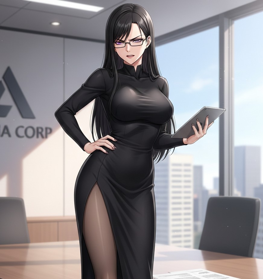 黒のスリットドレスから覗く、長くしなやかな脚。夜の闇を溶かしたような黒髪。