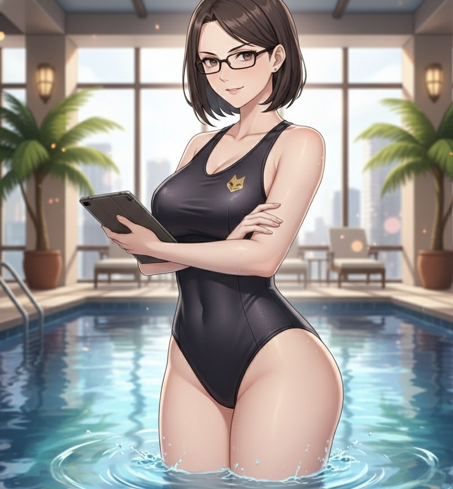屋内プールの更衣室の通路を、輝は足元がおぼつかないまま歩いていた。隣には、何食わぬ顔で可愛らしく微笑む結衣の姿がある。先ほどのプールでの情事が、輝の身体から全ての力を奪い去っていた。