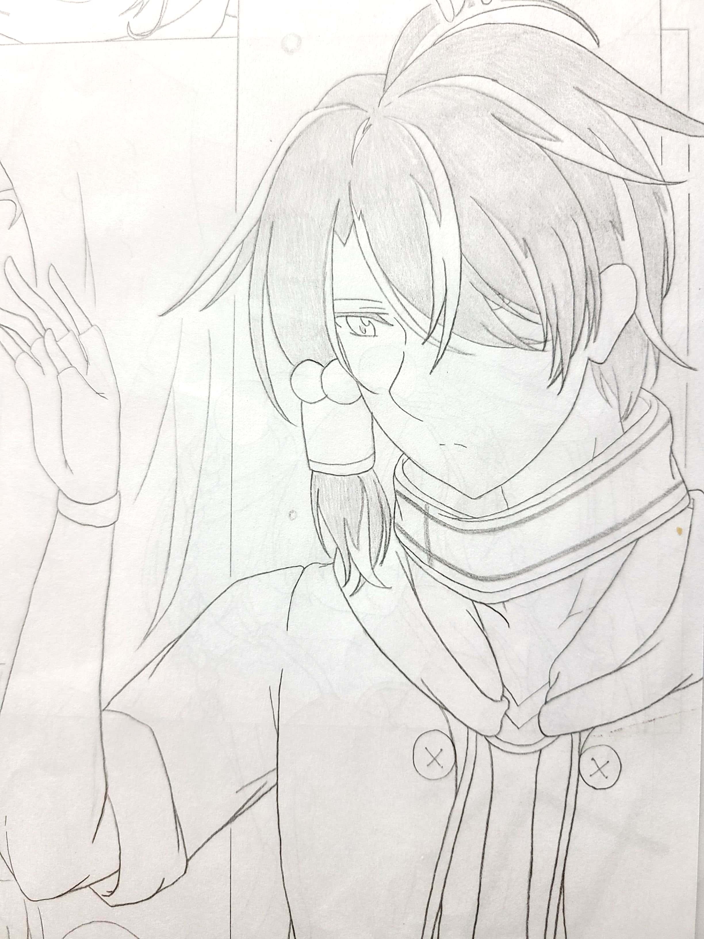 真面目だが強気で、どこか挑発的な笑みを浮かべる青年。