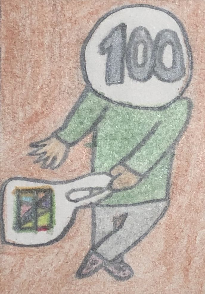 鏡に映り込んだ自分の姿を見て、タケシはやっと分かった。あれはやはりキムラさんだったのだ。コバトさんだったのだ。頭の代わりに人々の胴に乗っかっていた硬貨や紙幣は、その人の所持金額ではなく、その人の「金銭欲」であった。倹約主義のキムラさんやコバトさんは、1円、100円程度の金銭欲しかないし、500円が世の中の並の金銭感覚なのだとすれば、その女のバッグの値段や財布の中身が月並みなのも当然である。ホームレスの男があんな札束だったのも、生活困窮者の彼にとってお金はそれぐらい必要だということなのだろう。