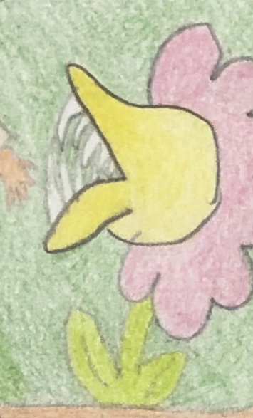 人食い花「こういうのがいるからいやなのよねぇ。わたしを珍しがって引っこ抜こうとする…。こういう時は、あいつの手に噛みついて……」