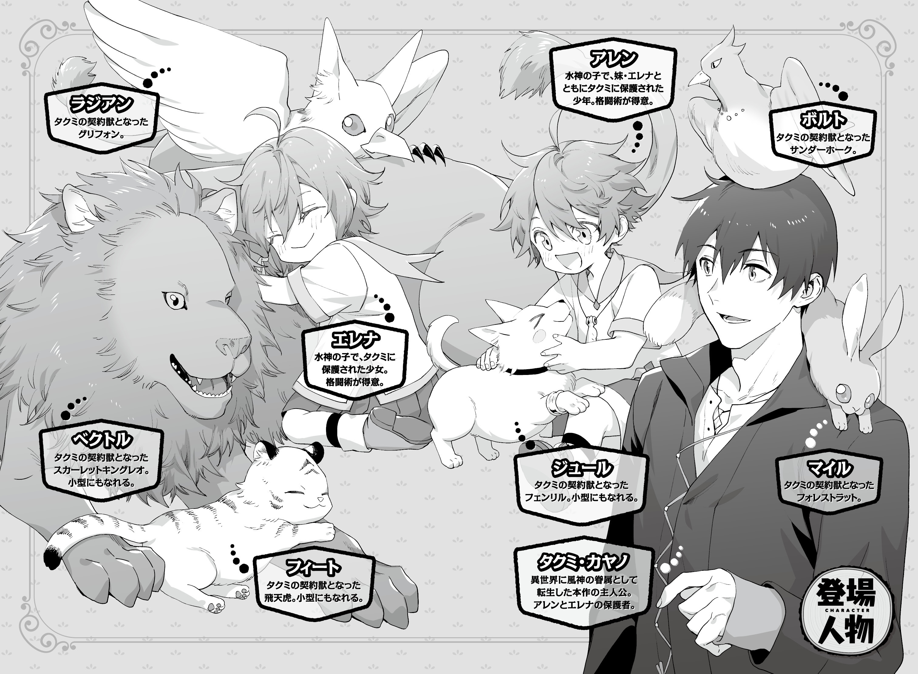 そして、転移装置の間には誰もいなかったので、そこでフェンリルのジュール、飛天虎のフィート、サンダーホークのボルト、スカーレットキングレオのベクトル、フォレストラットのマイル、グリフォンのラジアンを呼び出した。