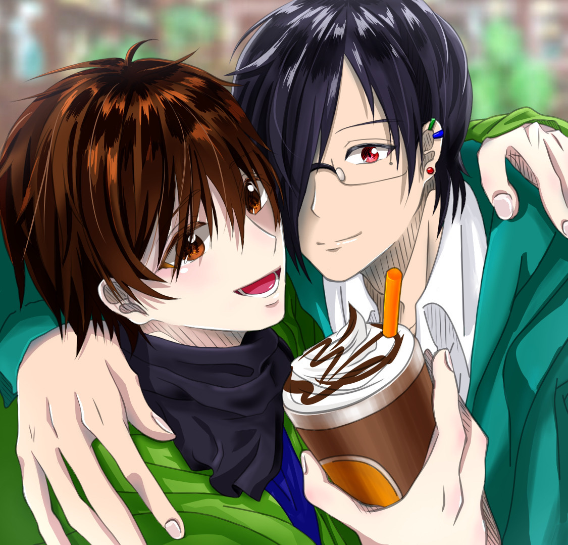 ここ数週間、色々あったり静先輩が僕の食事を管理してたりしたこともあって久しぶりのチョコレートに、うきうきしながら飲もうとしたら、静先輩がこっちおいで、と僕の肩を抱いてスマホを取り出した。