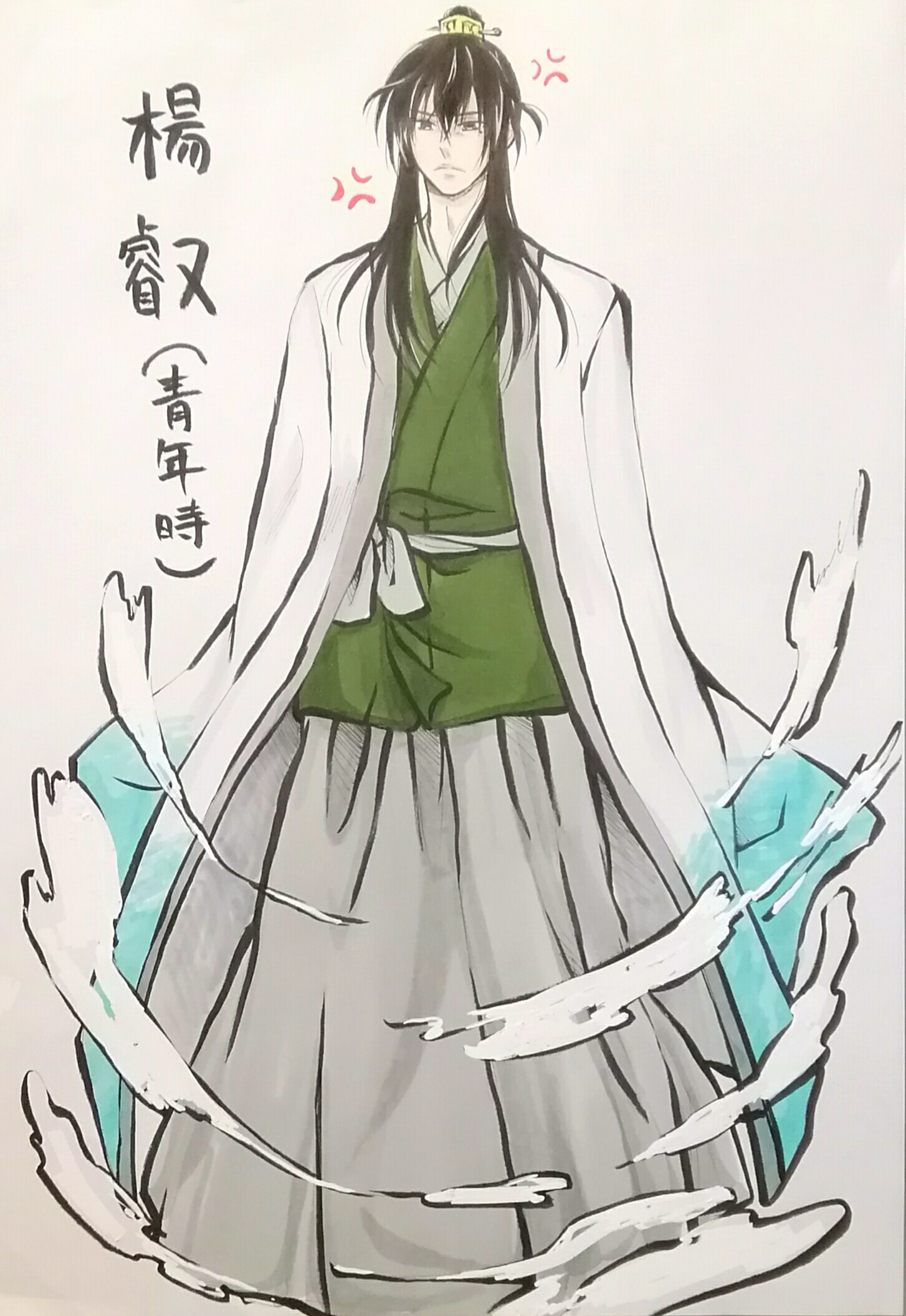 黒々とした長髪はきっちり一つに括られ役人のように頭の上の小さな冠に纏められていた。